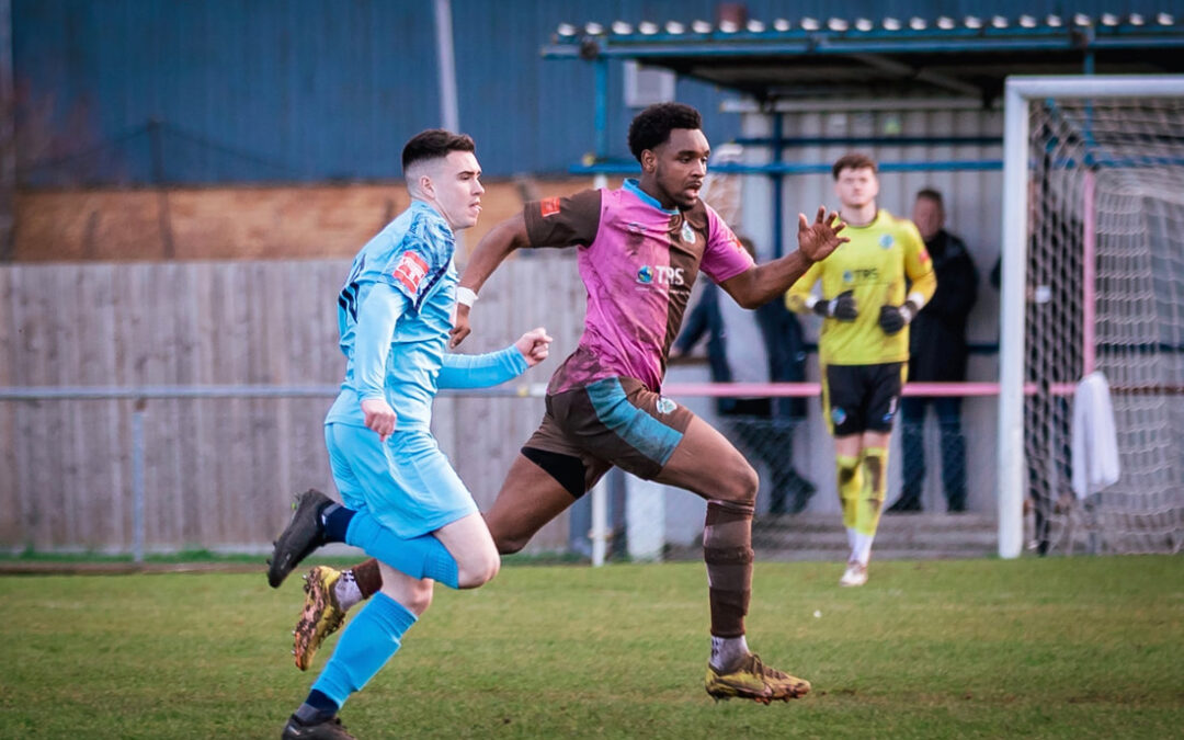 Halsey was involved in the action again soon afterwards, playing in a more advanced position, as he was brought down inside the area, but the referee waved play on. Up the other end, however, Enfield Town were awarded a penalty when Jake Cass was brought down by Coulter, giving the visitors an opportunity to double their lead. Cass stepped up and emphatically converted, hammering his attempt down the middle.